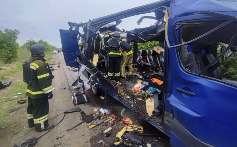 El ataque ocurrió cuando un autobús evacuaba a personas mayores de la zona de conflicto, según informaron autoridades ucranianas. El jefe de la comunidad local, Yurii Zarko, decretó luto oficial hasta el 19 de mayo y describió la jornada como un “sábado negro”.