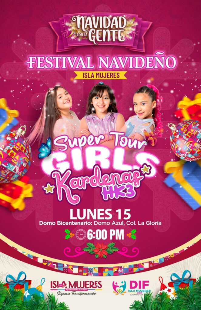 Isla Mujeres (Marcrix Noticias).– En el marco del programa “Navidad con la Gente”, el Gobierno de Isla Mujeres que encabeza la alcaldesa Atenea Gómez Ricalde, celebrará en grande a la niñez isleña con los Festivales Navideños, que serán amenizados por Las Hermanitas Kardenas.