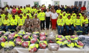 El personal de Protección Civil recibió uniformes consistentes en playeras de manga larga en colores blanco y azul marino, además de pantalones tácticos, adecuados para la atención de emergencias y tareas de prevención.