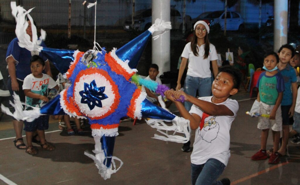 Las familias que asistieron a la Posada Navideña en Tu Colonia disfrutaron de un espectáculo infantil, de actividades lúdicas en donde las niñas y niños pintaron y elaboraron dibujos navideños, asimismo, rompieron piñatas llenas de dulces, hicieron burbujas de colores, degustaron ricos platillos y junto al coro del Adulto Mayor pidieron la tradicional posada.