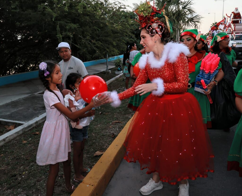 La alcaldesa encabezó el desfile, caminando por las avenidas principales y repartiendo dulces y sorpresas a todas las niñas y niños que esperaban ansiosos para ver pasar a los contingentes. En el desfile destacaron personajes clásicos de la Navidad como la Señora Claus, Santa Claus, El Grinch y duendes.