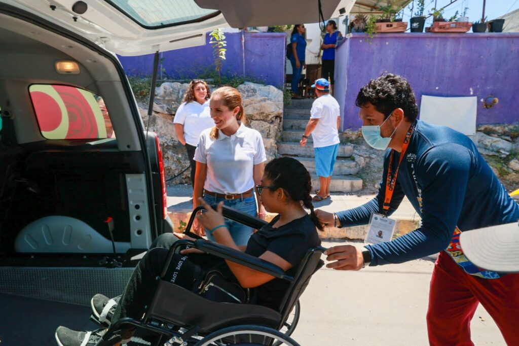 Una de las beneficiadas es la menor Melany Gurubel Chalé de 16 años con discapacidad motriz derivada de una lesión medular, quien fue trasladada de su domicilio en la colonia Lol-Beh de la Zona Insular a las instalaciones del CRIM Municipal en el transporte inclusivo UNEDIF.
