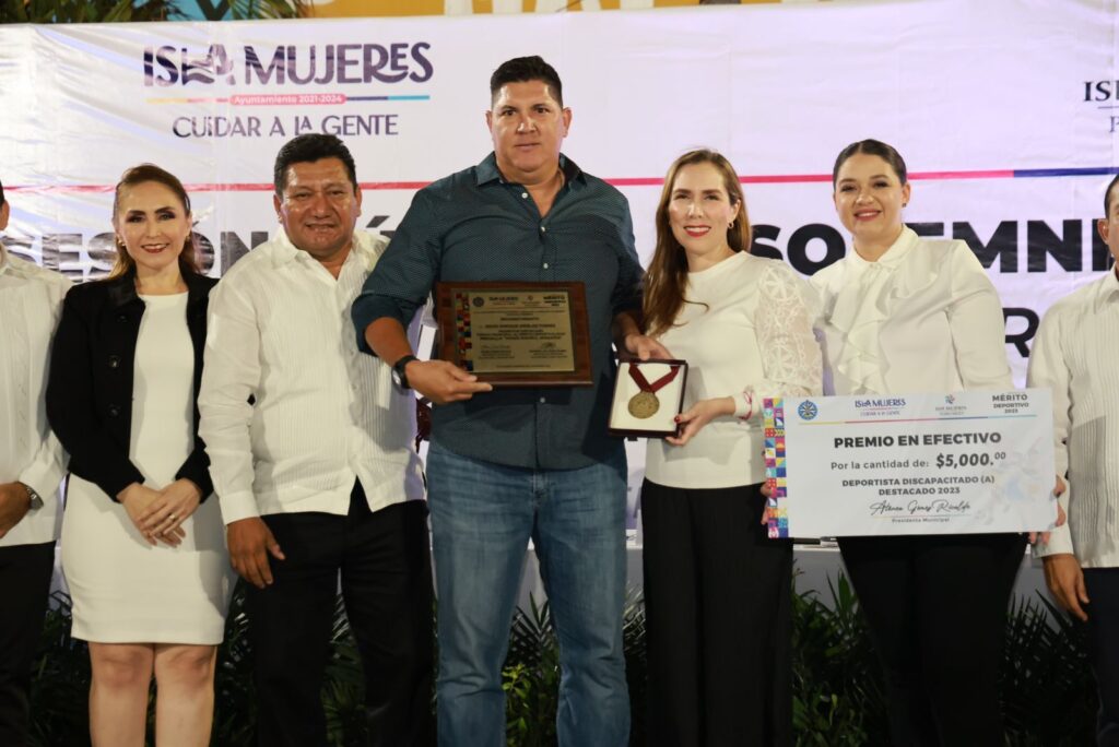 En lo que corresponde a la categoría Deportista con Discapacidad, la alcaldesa entregó la medalla a Mario Alejandro Pech Che por su destacada participación en handball, siendo un jugador que padece poliomelitis, no obstante, ha realizado la actividad en crossfit y gimnasio; en la categoría Entrenador Destacado la medalla fue para Mario Alberto Náhuat Lara, al sobresalir en el deporte de contacto y ser experto en el Taekwondo, desempeñándose como docente y entrenador certificado en deporte de combate obteniendo 178 medallas para el municipio.
