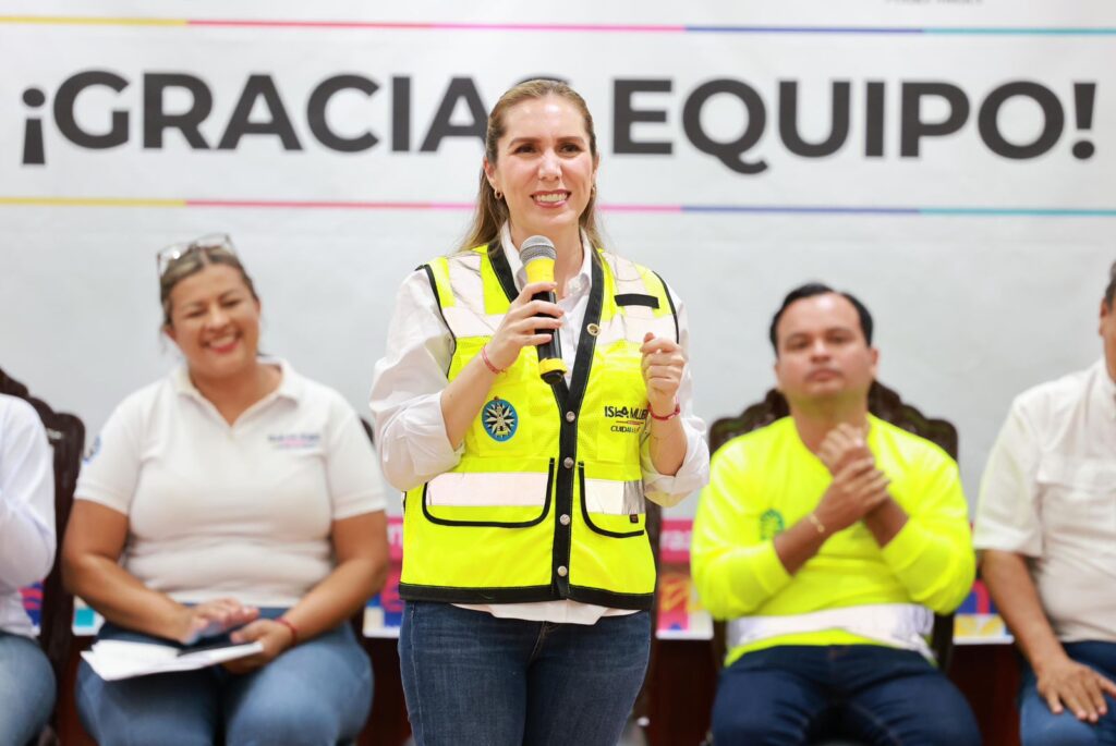 Isla Mujeres, Quintana Roo, (MARCRIX Noticias), 22 de enero de 2024.- La Presidenta Municipal de Isla Mujeres, Atenea Gómez Ricalde, entregó reconocimientos a las áreas operativas del municipio, reconociendo el esfuerzo y trabajo permanente del personal en beneficio del municipio, durante las últimas semanas del 2023, al redoblar las acciones para mantenerlo limpio y ordenado.