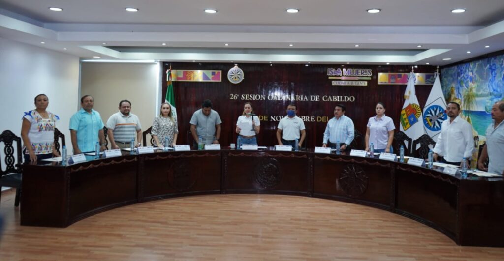 En la 26ª. Sesión Ordinaria de Cabildo estuvieron presentes los regidores Amada Alejandra Peniche Hernández, Dancey Geisler Fernández Loría, Jessica Contreras Gómez, Pedro Manuel Palma Chan, Gaspar Kumul Ay, Fernando Ricardo Bacelis Godoy, Bella Mar Garrido Gómez, Héctor Gil Chablé, el síndico municipal José Manuel López García y el secretario general del Ayuntamiento Hugo Iván Sánchez Montalvo.