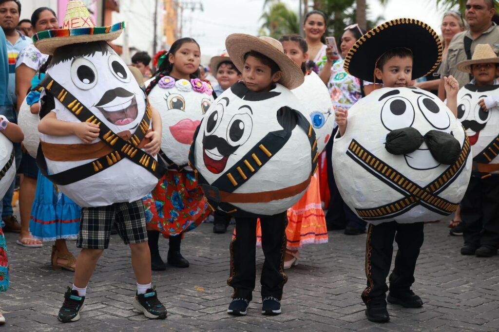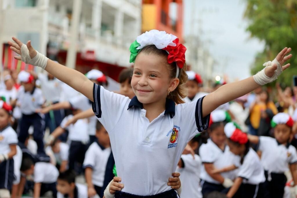 Los contingentes desfilaron con orgullo, representando a diversas instituciones educativas y deportivas, desde el nivel básico hasta el superior. Entre los grupos destacados estuvieron el equipo de cachibol de la Coordinación del Adulto Mayor del Sistema para el Desarrollo Integral de la Familia (DIF) Isla Mujeres, las escuelas primarias “Andrés Quintana Roo”, “César Mendoza Santana” y “Julio Sauri Espinoza”, así como la secundaria técnica “Benito Juárez” y el Colegio de Bachilleres.