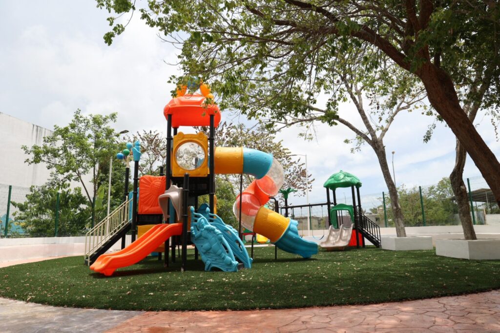 Con la construcción de más espacios recreativos, además de promover la sana convivencia y esparcimiento de la niñez, se contribuye a la construcción de un municipio más próspero, justo y humanista, acortando las brechas de desigualdad como lo establece el Nuevo Acuerdo por el Bienestar y Desarrollo de Quintana Roo que promueve la Gobernadora del Estado, Mara Lezama Espinosa. Texto y Fotos: Tomado del boletín