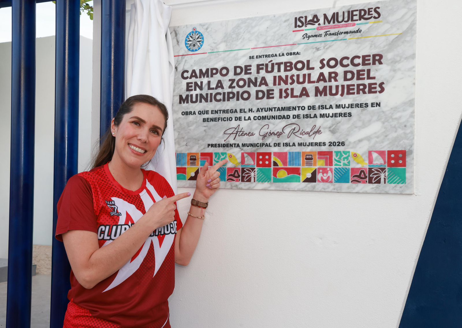 Isla Mujeres (Marcrix Noticias).– La Presidenta Municipal, Atenea Gómez Ricalde, inauguró la nueva cancha de fútbol soccer en la colonia Salinas, reafirmando su compromiso de seguir transformando Isla Mujeres con obras que elevan la calidad de vida de las familias y fortalecen el desarrollo de la niñez y juventud, a través del deporte.