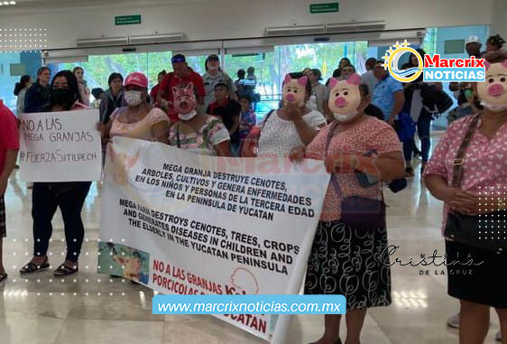 Señalan que la granja tiene capacidad hasta para 48 mil cerdos, por lo que se producen gran cantidad de excremento, los cuales son vertidos al manto freático contaminando cenotes y pozos de donde sacan agua para el consumo humano.