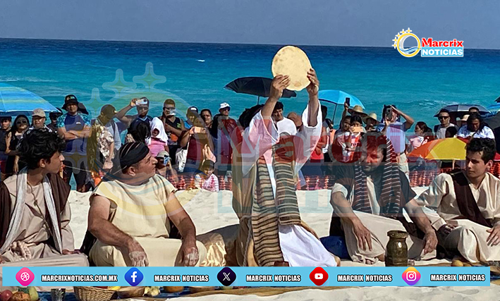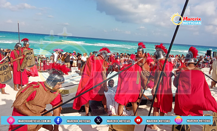 De regreso el Jesús de la Playa Delfines ante el gobernante romano, este le pidió a la multitud que decidiera si liberaba al temido ladrón y asesino, Barrabás o a Jesús, por lo que la muchedumbre grito “!Barrabás”!, con lo cual la suerte estaba echada para el nazareno, quien moriría en la cruz, con el hermoso marco de la playa más bella de México.