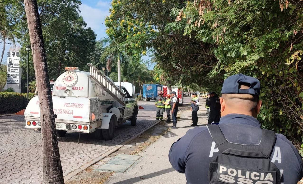 Playa del Carmen. (Marcrix Noticias).- La Secretaría de Protección Civil, Prevención de Riesgos y Bomberos del Ayuntamiento de Playa del Carmen atendió de forma preventiva una pipa de gas LP en Playacar Fase 2, luego de que se registrara una falla mecánica en el sistema eléctrico de la unidad.