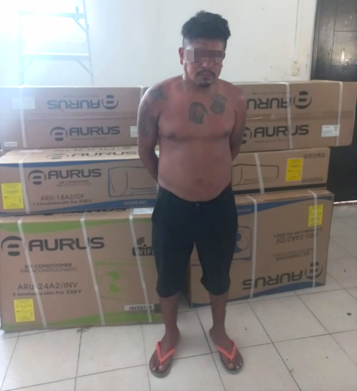 Playa del Carmen (Marcrix Noticias).- Derivado de un operativo de vigilancia, policías de la Secretaría de Seguridad Pública y Tránsito Municipal de Solidaridad, lograron el aseguramiento de cinco aires acondicionados y un sujeto que los tenía en su posesión, mismo que al preguntarle si eran suyos cayó en contradicciones y no pudo comprobar su propiedad.