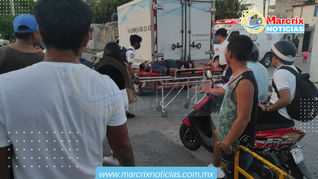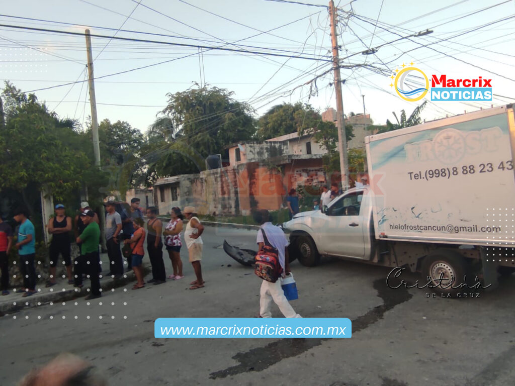 Cancún (Marcrix Noticias).- la tarde de hoy domingo registró un percance vehicular entre una camioneta repartidora de hielos y un motociclista.