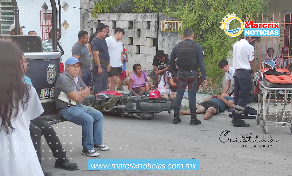 Cancún (Marcrix Noticias).- la tarde de hoy domingo registró un percance vehicular entre una camioneta repartidora de hielos y un motociclista.