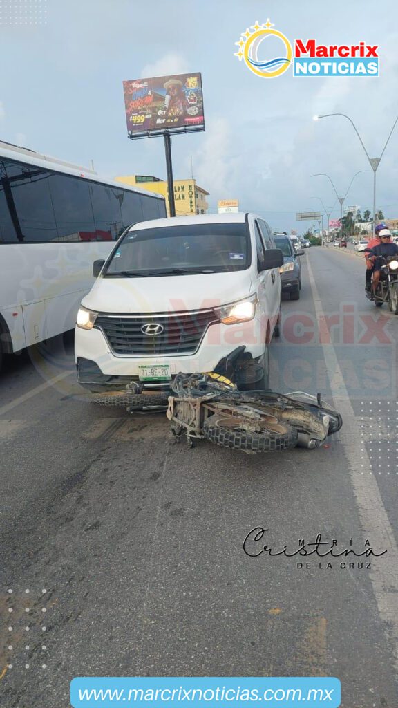 Cancún (Marcrix Noticias).- La tarde este jueves, una van turística atropelló a dos personas que viajaban a bordo de una motocicleta en la avenida José López Portillo, en la segunda entrada de la Región 94 de Cancún.