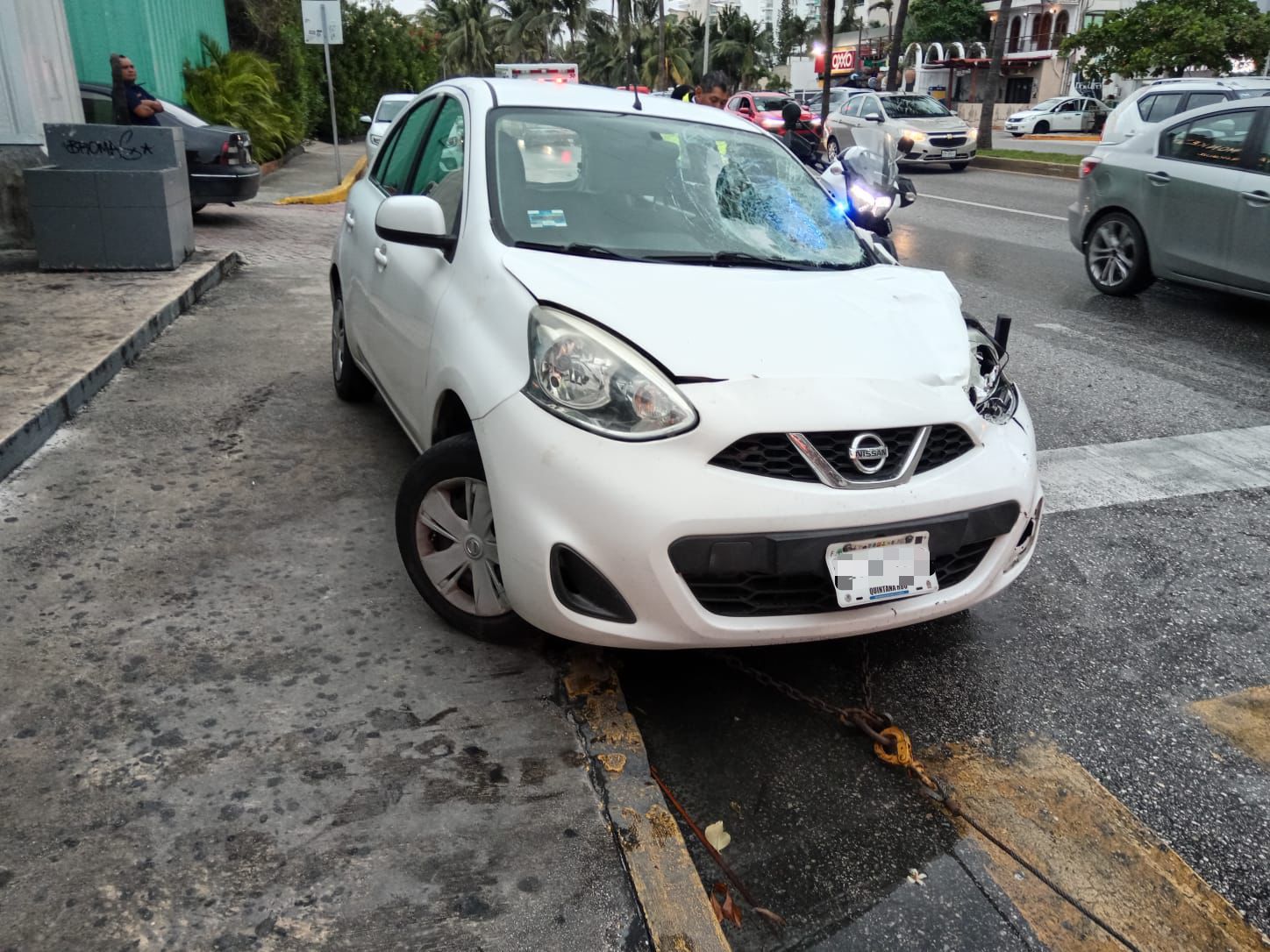 De acuerdo con el reporte vial, cuando el conductor del vehículo en referencia circulaba en dirección al Aeropuerto sobre el Bulevar Kukulkán, al no tener precaución, atropelló a dos extranjeros que cruzaban la calle de izquierda a derecha sobre el paso peatonal.