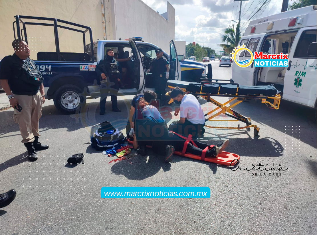 El accidente ocurrió a un costado de la Plaza de la Tecnología en Cancún; testigos ayudaron a la víctima, mientras el responsable fue entregado a la policía.
