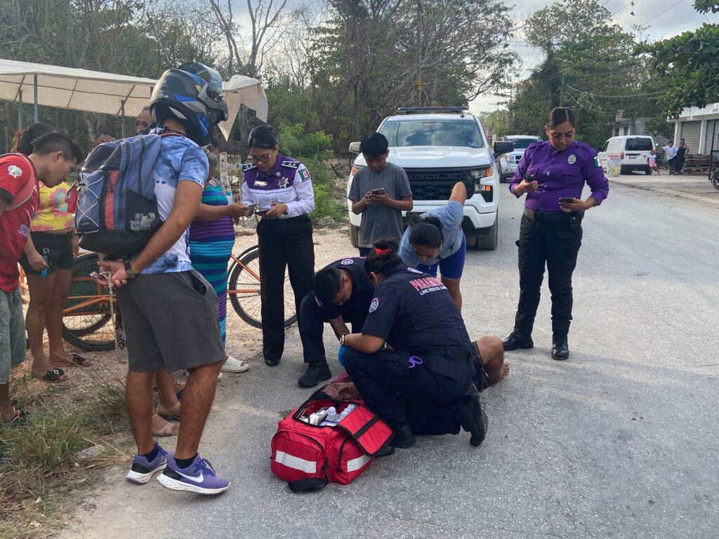 Cancún, Marcrix Noticas.- Un sexagenario que vende aguas en su triciclo, fue embestido por un motociclista en la colonia irregular Avante en la ciudad de Cancún, quedando gravemente lesionado.