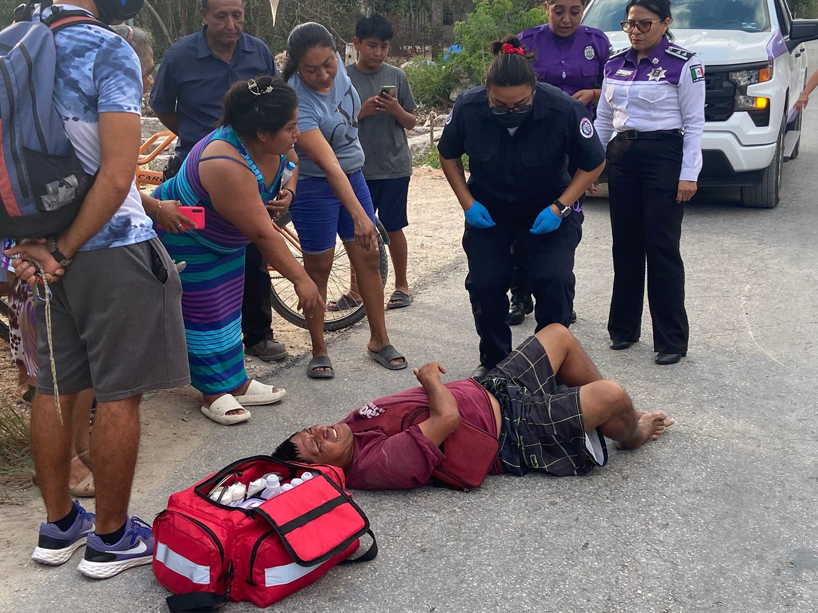 Hasta el lugar del accidente arribaron los peritos de Tránsito, que al ver que no había datos suficientes del motociclista que atropelló a este adulto mayor, dieron parte a la Fiscalía General del Estado, para que le tomaran su declaración en el Hospital General de Cancún, a fin de que demande a quien resulte responsable y logren ubicarlo para que pague por los daños provocados, tanto médicos como del triciclo, el cual quedó averiado y no sirve para el trabajo que lo utilizaba esta persona.
