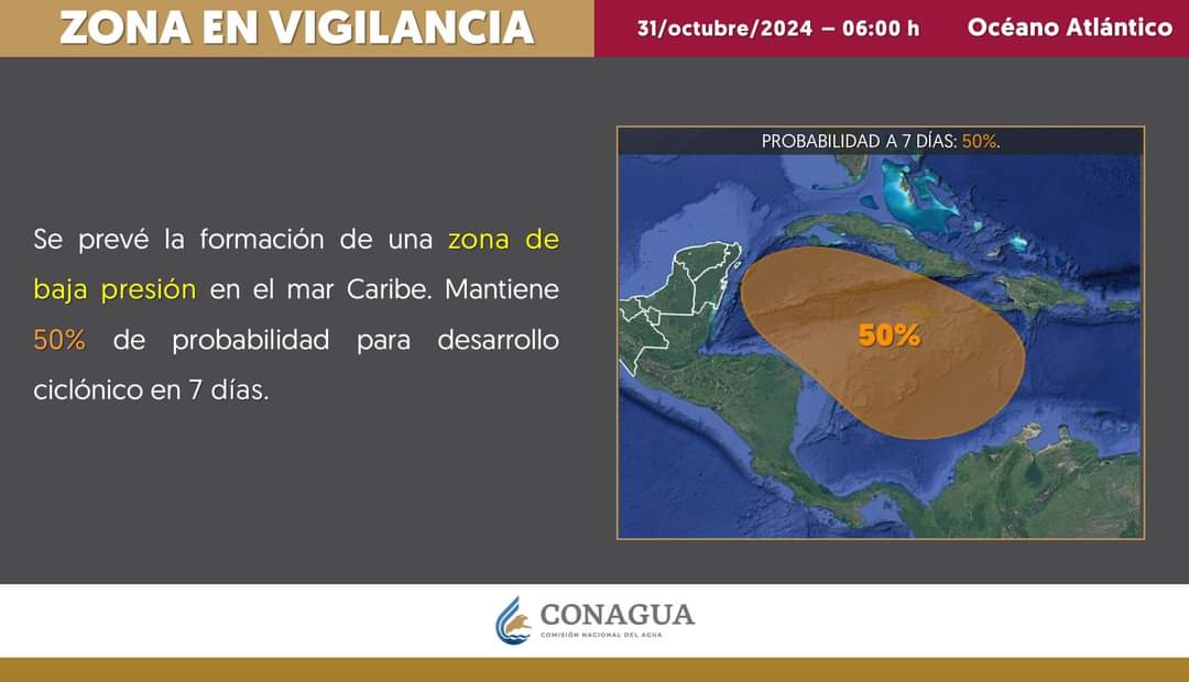 Cancún(Marcrix Noticias).- Las autoridades de Quintana Roo dieron a conocer la posible formación de una Zona de Baja Presión en el Mar Caribe.