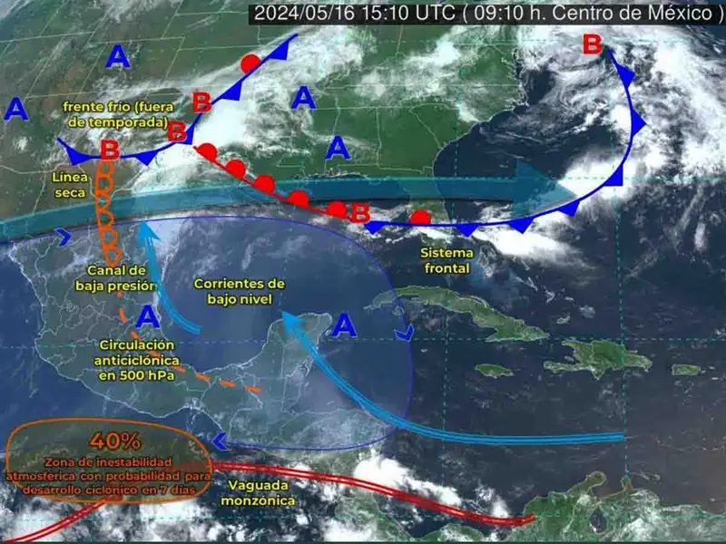 Al iniciar la Temporada de Huracanes 2024, la zona de baja presión ubicada al sureste de la República Mexicana incrementó en 40 por ciento su probabilidad de convertirse, este fin de semana, en el primer ciclón tropical del Océano Pacífico, que llevaría el nombre de Aletta, muy cerca del Golfo de Tehuantepec.