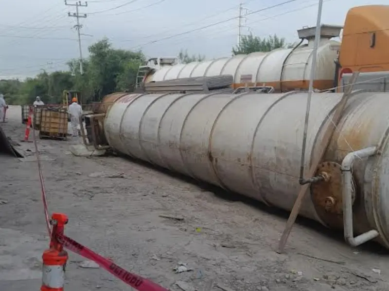 Pipa cargada con ácido clorhídrico se vuelca en Nuevo León