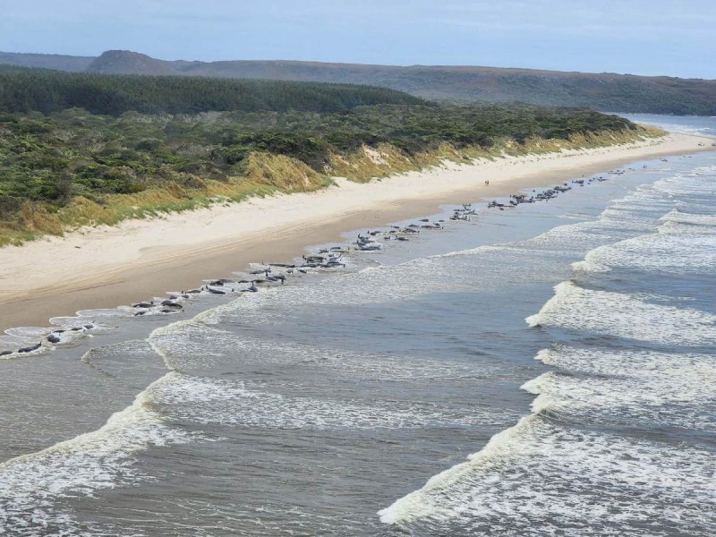 Alrededor de 200 ballenas piloto murieron tras quedar varadas en una playa barrida por las olas en la abrupta costa del oeste de Tasmania, en Australia, indicó este jueves el…