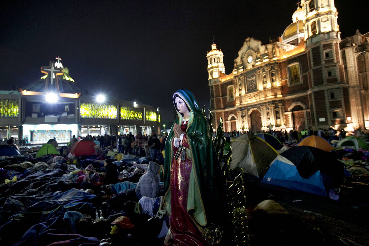 Cientos de miles de mexicanos/as peregrinan al santuario de la Virgen de Guadalupe, también conocida como La Morenita, la imagen religiosa y cultural más popular del país.