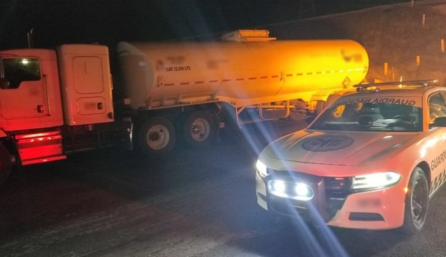 Aseguraron más de 30 mil litros de combustible en un tractocamión con reporte de robo.