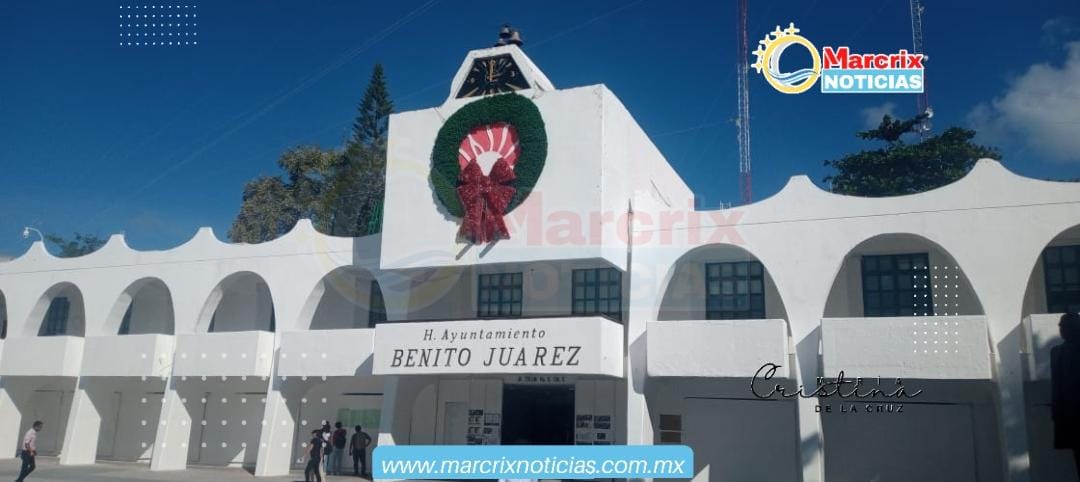 El Palacio Municipal comenzó a ser decorado con adornos navideños desde muy temprano.