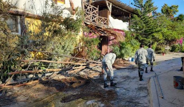 La Guardia Nacional forman parte de las brigadas que se encargan de remover los escombros, con el objeto de evitar que reavivan las llamas.