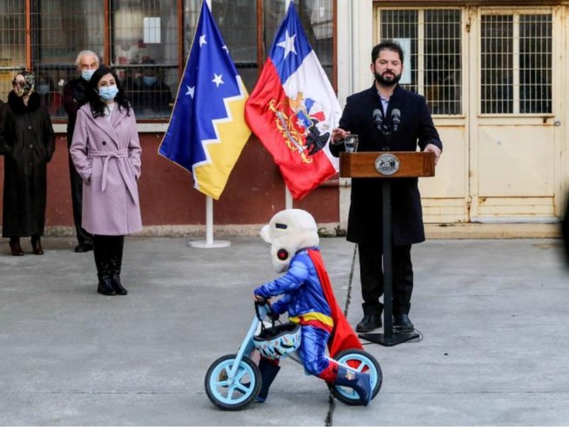 Pequeño Superman ‘protege’ a Boric durante discurso