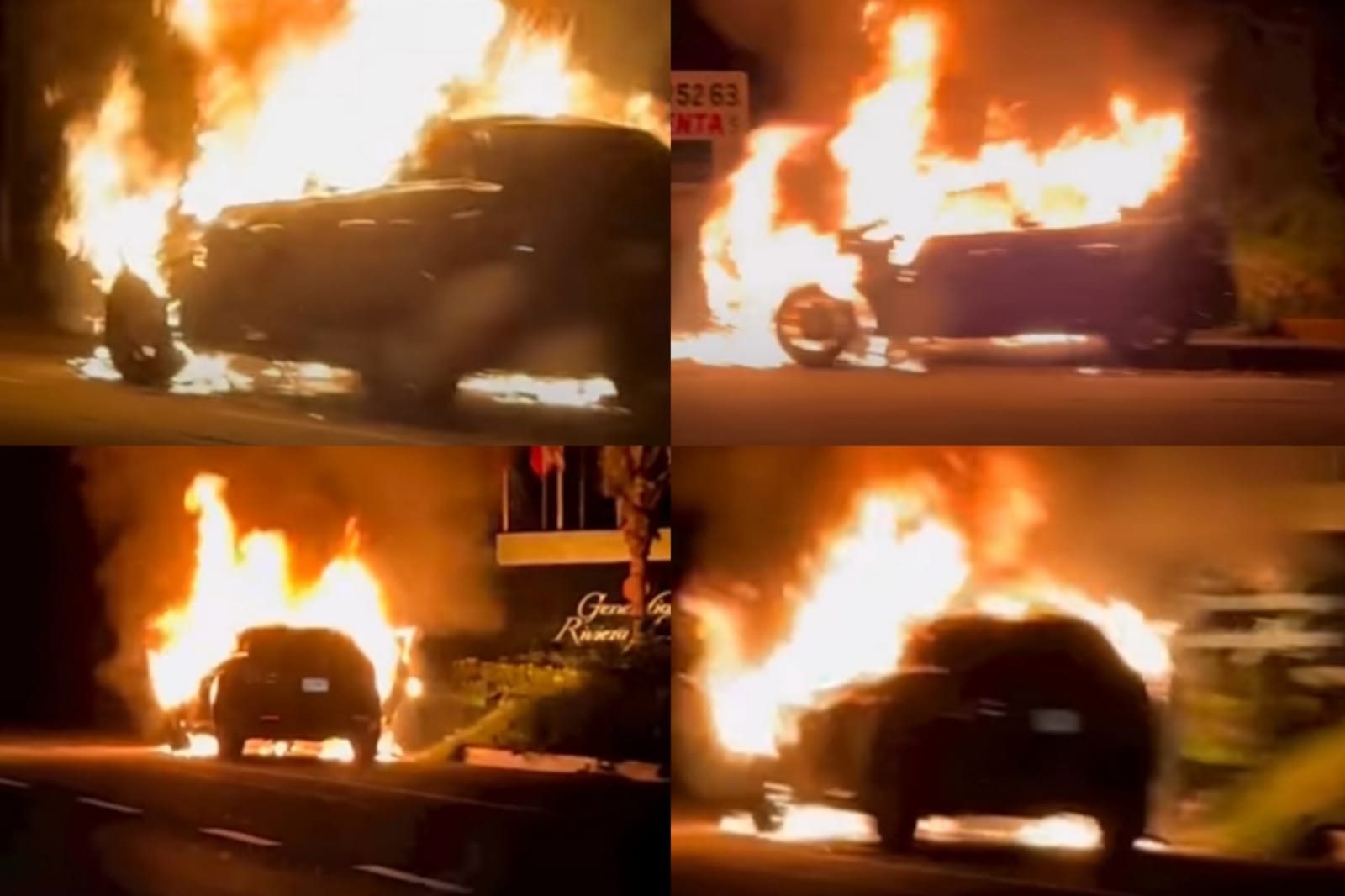 Devoran las llamas del fuego a una camioneta en la carretera Playa del Carmen – Puerto Morelos