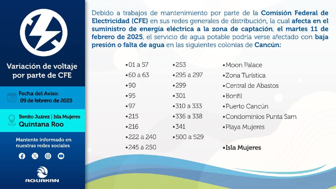 Aguakan informó sobre los cortes de agua debido a trabajos de mantenimiento por parte de la CFE. Cancún(Marcrix Noticias).- Aguakan, la empresa encargada del suministro de agua potable en la…
