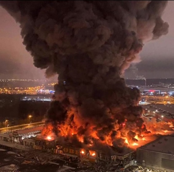 Un fuerte incendio consumió un centro comercial de la ciudad de Jimki, en la región de Moscú.