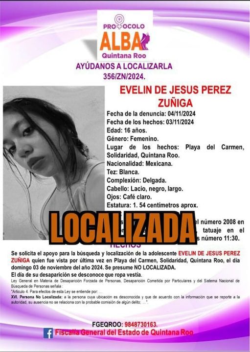 Desde el 31 de octubre pasado salió de su casa. Playa del Carmen (Marcrix Noticias)- La policía de Solidaridad informó sobre la localización de la adolescente E.D.J.P.Z, quien fue reportada…
