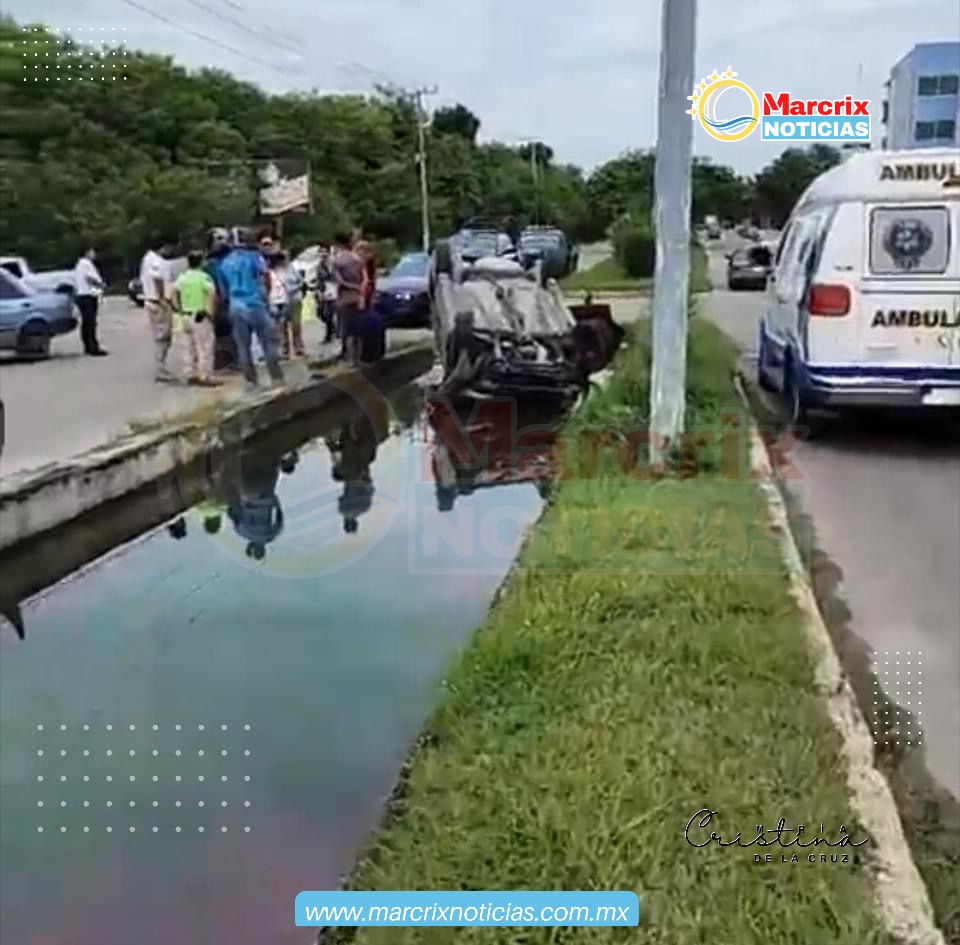 Chetumal (Marcrix Noticias).- Un aparatoso accidente se suscitó la tarde de este lunes en la avenida Erick Paolo Martínez, una de las arterias más transitadas de la capital del estado, en el que uno de los autos involucrados terminó con las llantas para arriba.