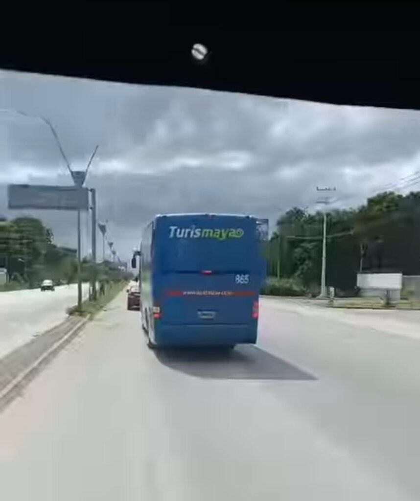 En un video que circula en redes sociales, se aprecia cómo el autobús de Turismaya zigzaguea peligrosamente sobre la avenida López Portillo rumbo a Mérida, para impedir el paso a un autobús de la empresa ADO.