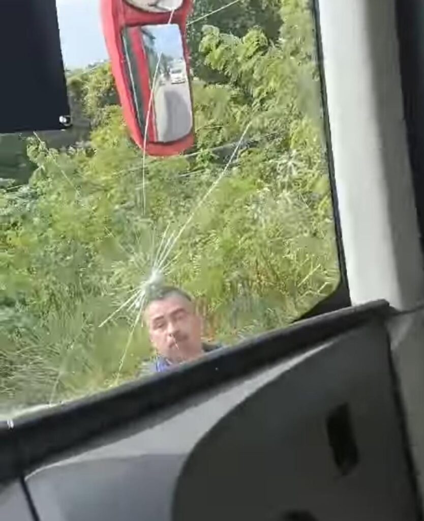 Al descender el autobús del chofer de Tursismaya, lo hace con un tubo con el cual se acerca a la ventanilla del chofer del ADO y encara, señalando “qué te pasa…. Qué te pasa a ti”, acto seguido, al ver que no le responden la agresión verbal, intenta subir al autobús y al ver que está cerrada la puerta, le da con el tubo al parabrisas del ADO, estrellándolo.