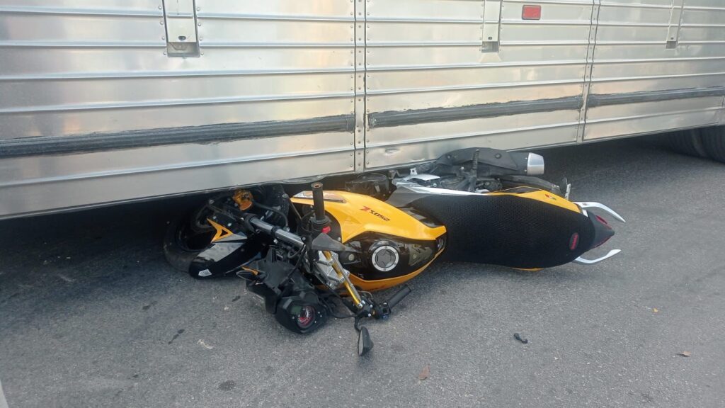 De acuerdo a testigos, el autobús intentó incorporarse a uno de los carriles sin percatarse de la presencia de la moto.