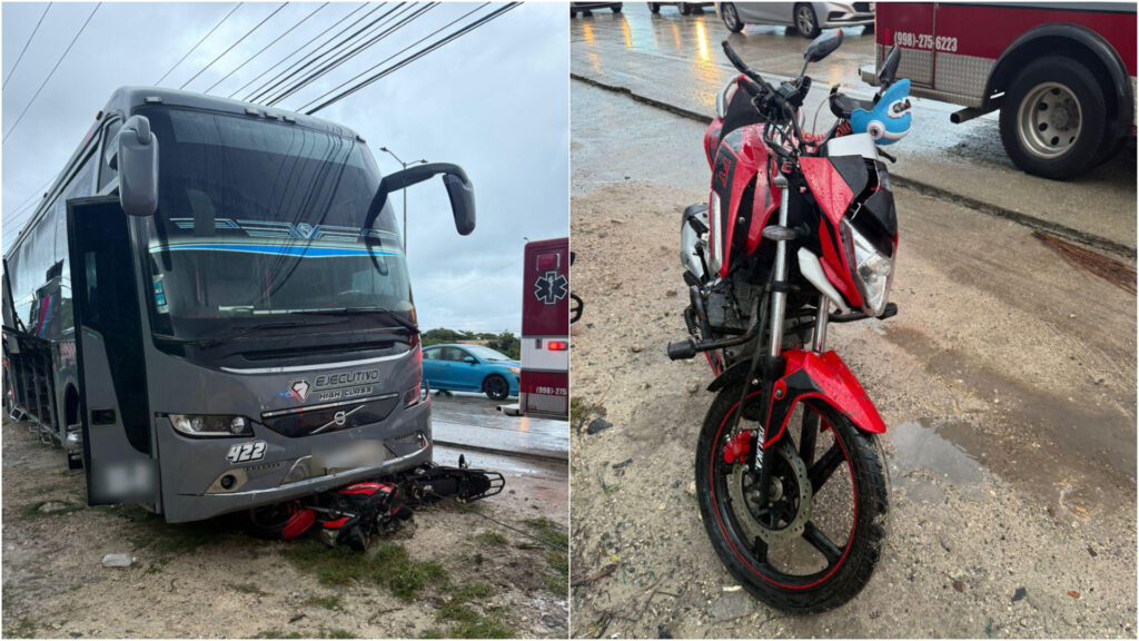 De acuerdo con el reporte oficial de la Dirección de Tránsito, los hechos ocurrieron alrededor de las 18:00 horas, cuando un autobús marca Volvo, color gris, circulaba por la vialidad y no respetó la señalización del semáforo, impactando primero a una motocicleta marca Vento, de color negro con rojo, que transitaba en dirección al centro de Cancún.