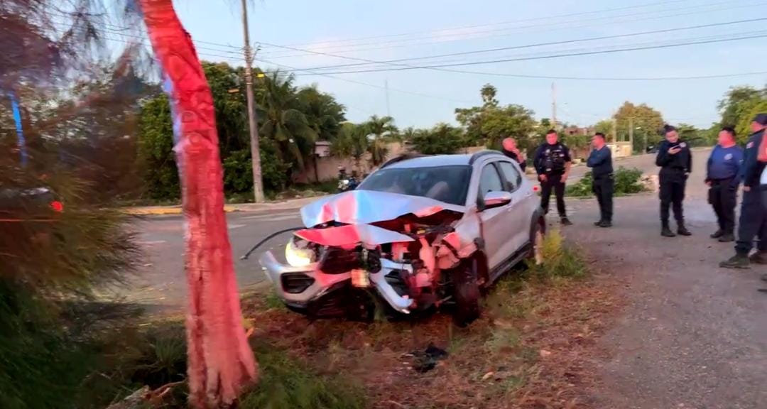 Felipe Carrillo Puerto(Marcrix Noticias).- Un violento choque despertó a los vecinos de la colonia Javier Rojo Gómez la mañana de este sábado, cuando un automóvil terminó incrustado contra un árbol en pleno camellón y su conductor huyó antes de que las autoridades arribaran.