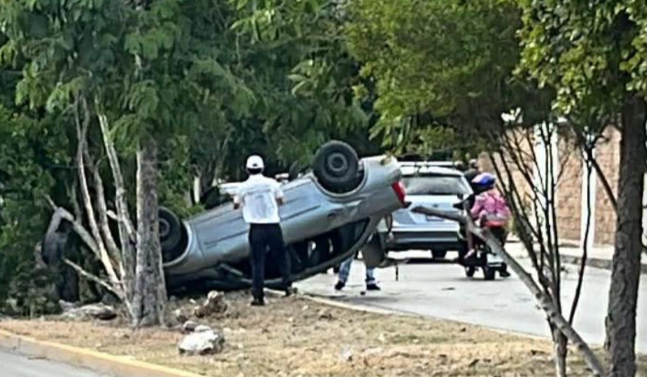 Playa del Carmen (Marcrix Noticias).– Un automovilista perdió el control de su unidad y terminó volcado la tarde de este día en el fraccionamiento Palmas 2, en Playa del Carmen, lo que generó la movilización de cuerpos de emergencia hasta la avenida 28 de Julio, a la altura de la calle Palma Marroque.