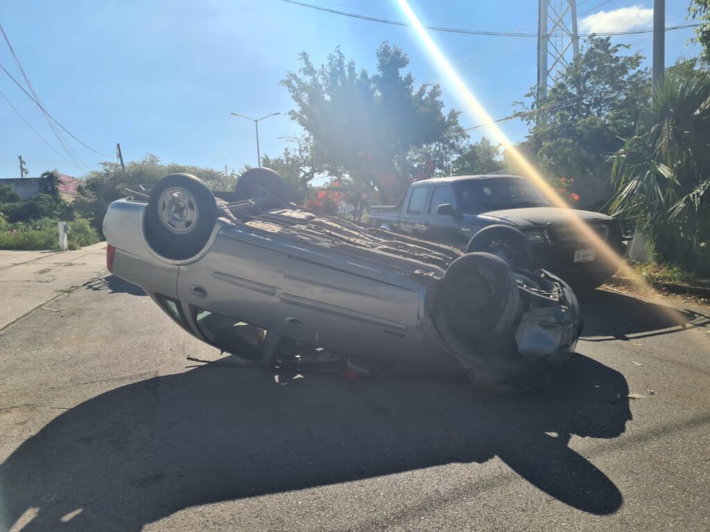 Cancún(Marcrix Noticias).- Un aparatoso accidente se registró la mañana de este domingo en la Región 105 de Cancún, donde un automovilista terminó volcado por conducir a exceso de velocidad.