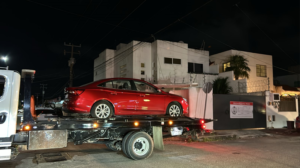 Los primeros reportes de este cateo, informan que dentro de los objetos asegurados, se encuentra un vehículo MG5 de color rojo, de la marca MG Motor.