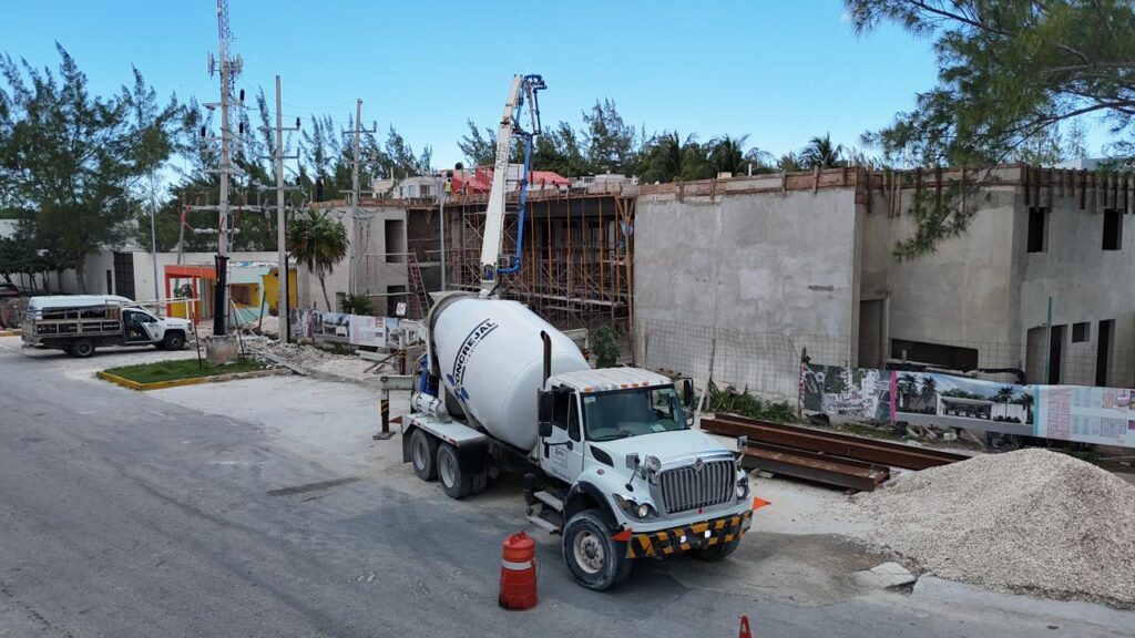 Isla Mujeres (Marcrix Noticias).– La obra de la nueva Estación de Protección Civil y Bomberos en Costa Mujeres, lleva un avance del 80 por ciento y como parte de estos trabajos hoy se realizó el colado de la loza del edificio.