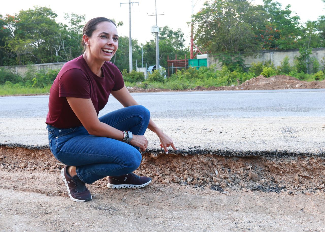 La Presidenta Municipal, Ana Paty Peralta, realizó un recorrido de supervisión en la rehabilitación del nodo vial en la entrada de la ciudad por la carretera libre a Mérida, donde recalcó que será una transformación completa.
