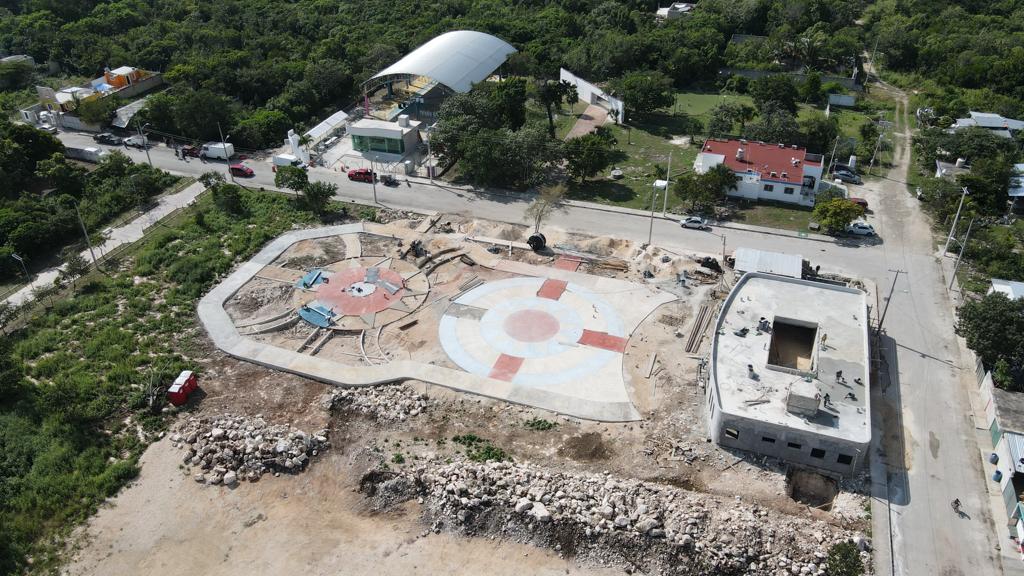 Isla Mujeres, Quintana Roo, 23 de enero de 2023.-El Gobierno que encabeza la alcaldesa Atenea Gómez Ricalde, continúa cumpliendo compromisos con la gente de la Zona Continental y haciendo obras que les generen un mayor bienestar y desarrollo, como es el caso de la Plaza Ejidatarios de Ciudad Mujeres, la cual registra un avance del 40 por ciento.