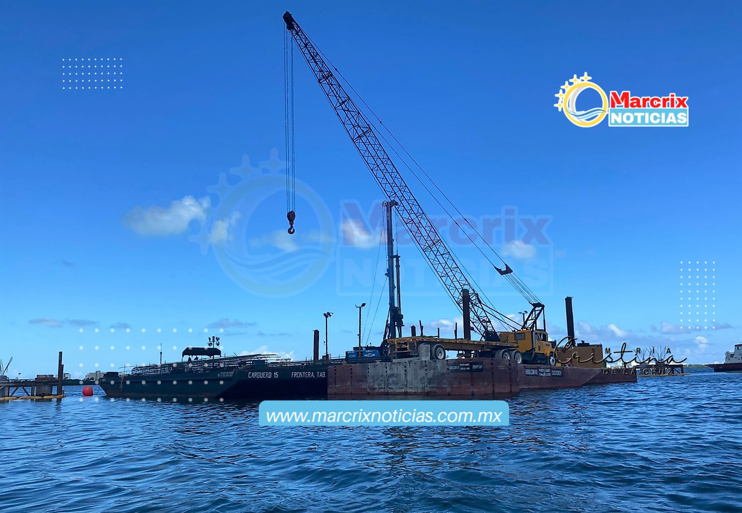 En un trayecto realizado por Marcrix Noticias a la zona de construcción del Puente, dentro del cuerpo de agua, se contabilizaron unas cuatro plataformas en donde se estarían colocando las columnas que sostendrán la obra civil, cuyo costo ascenderá a unos siete mil millones de pesos.