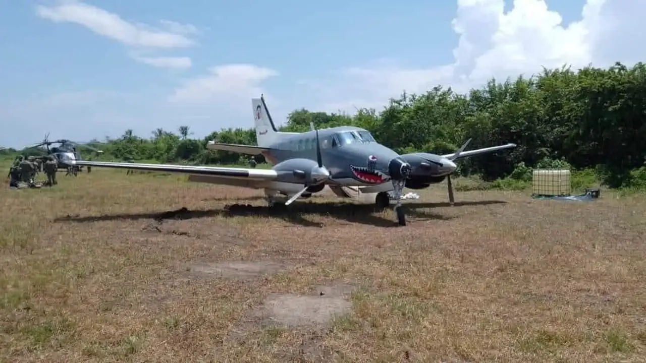 Sin embargo, los tripulantes lograron huir tras aterrizar en una pista clandestina y abandonar la carga, informó la Secretaría de la Defensa Nacional.